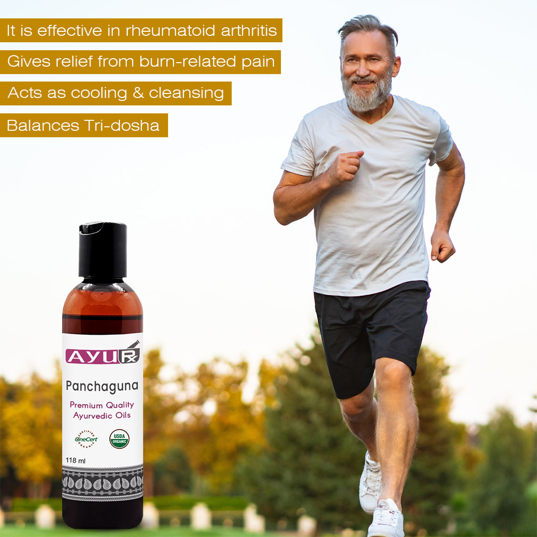 L'huile Panchaguna est un remède herbal premium élaboré à partir d'un mélange de cinq huiles naturelles puissantes reconnues dans la médecine ayurvédique. Cette huile polyvalente est formulée pour soulager les douleurs musculaires et articulaires, favoriser la relaxation et améliorer le bien-être général. Riche en nutriments essentiels et en antioxydants, l'huile Panchaguna pénètre profondément dans la peau, offrant des bienfaits anti-inflammatoires et analgésiques qui aident à apaiser les muscles endoloris et à atténuer l'inconfort. Sa composition unique comprend des ingrédients comme l'huile de sésame, connue pour ses propriétés réchauffantes, et l'huile de ricin, qui procure un effet nourrissant et hydratant. Idéale pour le massage, l'huile Panchaguna aide à améliorer la circulation sanguine et soutient les processus naturels de guérison du corps. Convient à tous les types de peau, cette huile est un ajout parfait à votre routine de bien-être quotidienne, offrant une solution naturelle pour le soulagement de la douleur et la relaxation.
