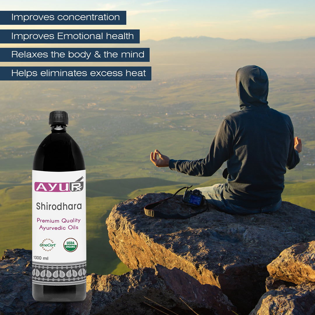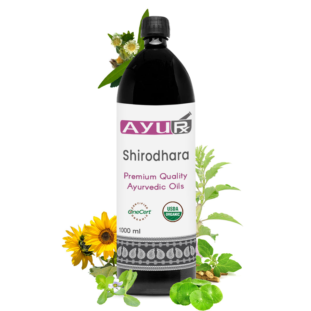 Shirodhara Oil is a specialized Ayurvedic formulation created for use in Shirodhara therap a deeply calming treatment involving the gentle pouring of warm herbal oil over the forehead.