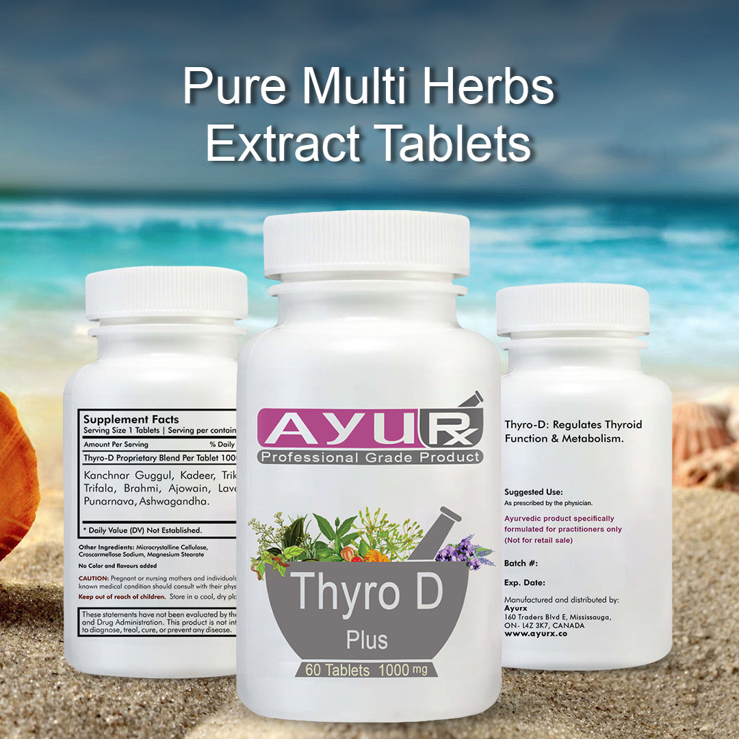 Thyro D Tablets are a specialized Ayurvedic polyherbal formulation crafted to support optimal thyroid gland function, regulate metabolism, and restore hormonal harmony. Enriched with Kanchnar Guggulu, Trikatu, Triphala, and Ashwagandha, this formulation works on Agni (digestive fire), detoxifies the lymphatic and endocrine systems, and acts as a Rasayana to rejuvenate glandular health.
