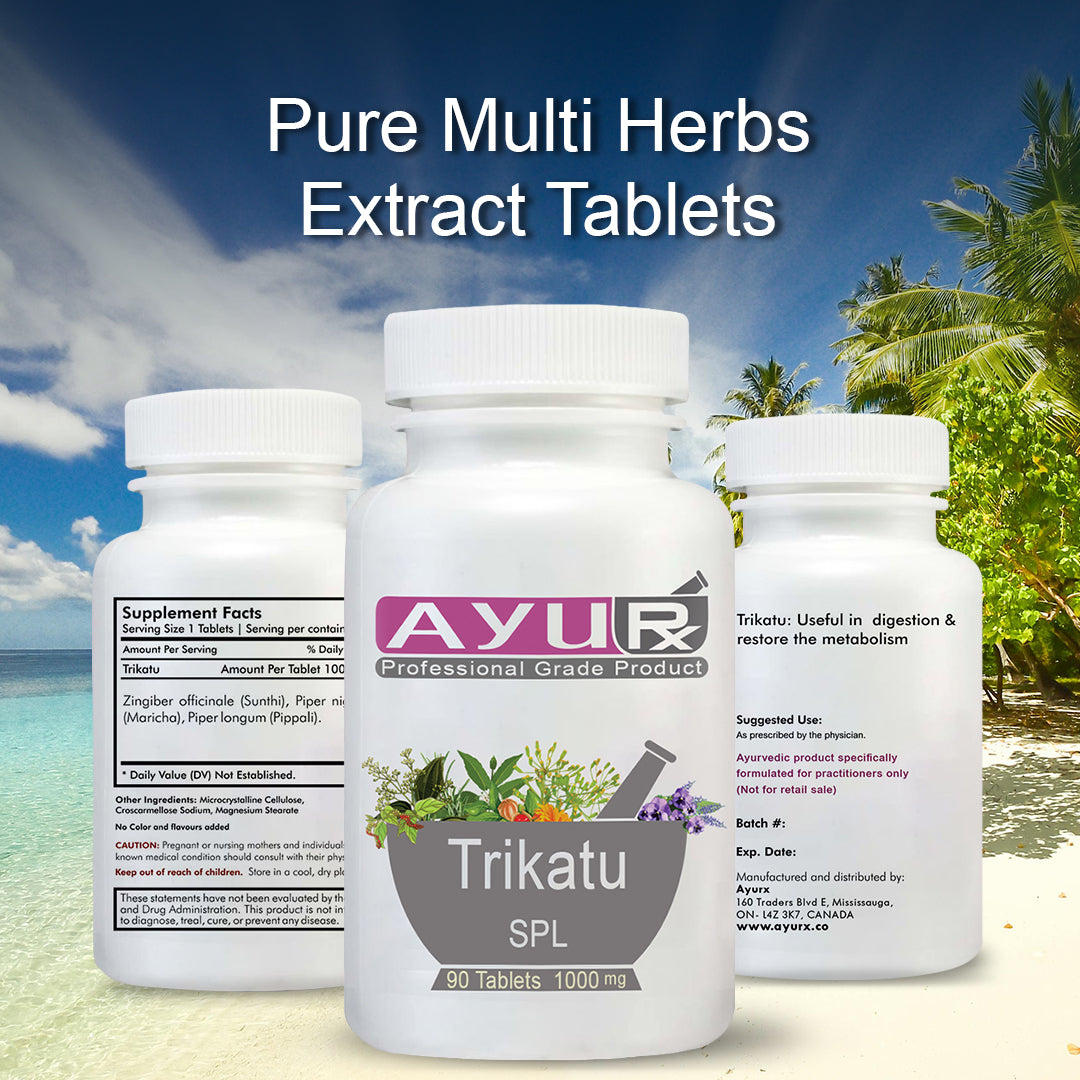 Trikatu Tablets are a classical Ayurvedic blend composed of three powerful pungent herbs Shunthi (Zingiber officinale), Maricha (Piper nigrum), and Pippali (Piper longum) renowned for their digestive, metabolic, and detoxifying properties.