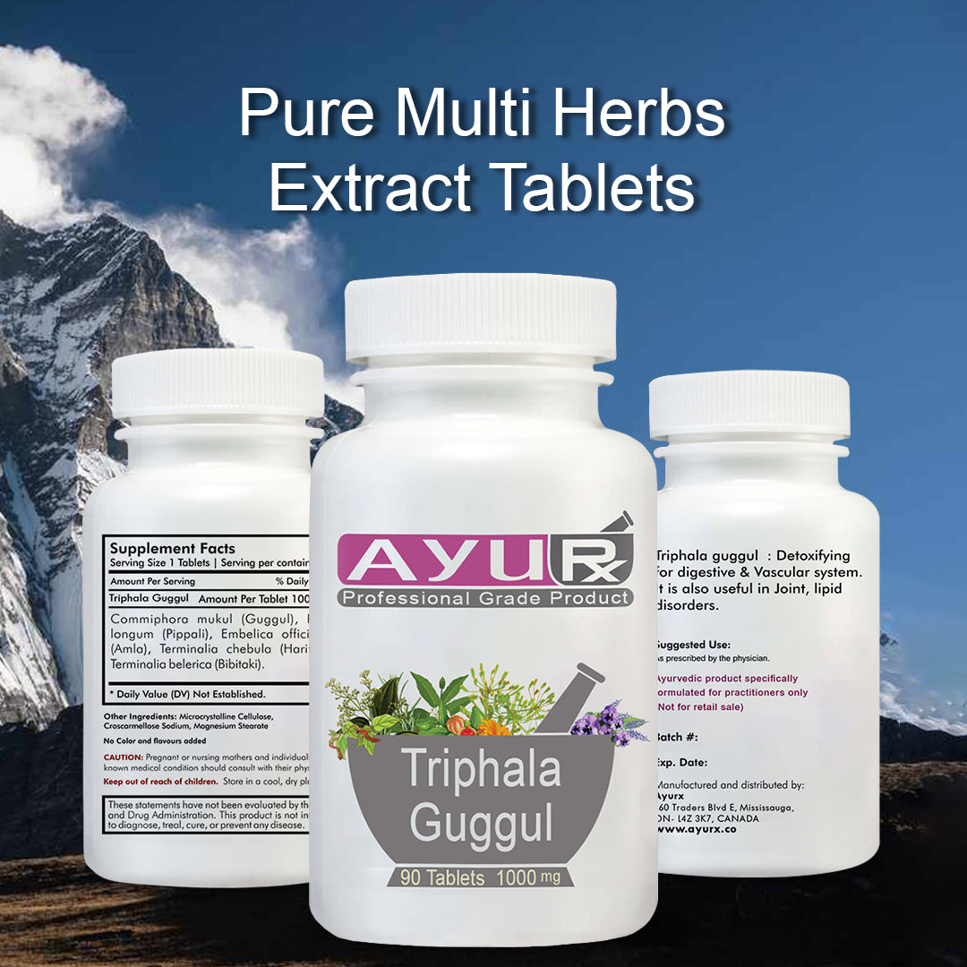 Triphala Guggulu Tablets are a time-honored classical Ayurvedic formulation combining two powerful entities Triphala, the tridoshic Rasayana, and Guggulu, the renowned Yogavahi with Lekhana (scraping) and anti-inflammatory properties.