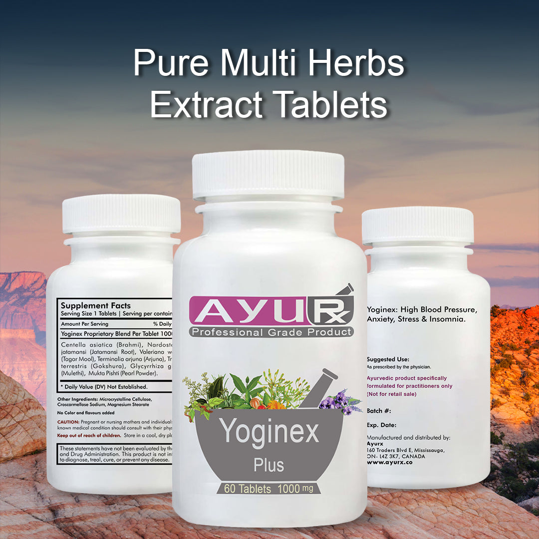 Yoginex Tablets are a premium Ayurvedic neuro-cardiotonic formulation designed to enhance mental clarity, manage stress and anxiety, and support emotional resilience. A thoughtful combination of Medhya Rasayanas like Brahmi, Jatamansi, and Tagar, along with heart-nourishing Arjuna, renal-supportive Gokshura, and the calming mineral Mukta Pishti, Yoginex addresses the modern need for mind-body equilibrium. It is ideal for individuals experiencing mental fatigue, emotional instability, insomnia, mild hypertension, or stress-induced cognitive decline.